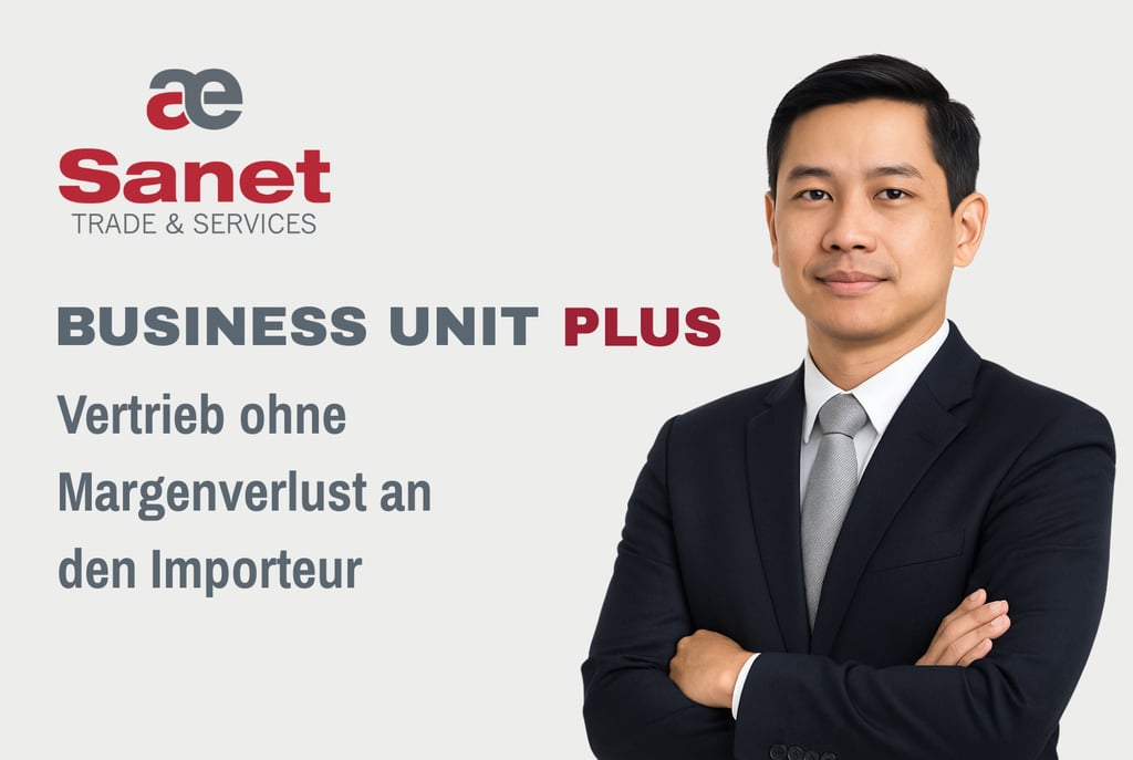 Sie bleiben der kommerzielle Auftraggeber. Sie legen Ihre Preise fest, bestimmen Rabatte und behalten Ihre volle Handelsspanne. Sanet fungiert lediglich als Ihr vertraglicher operativer Partner und Importeur – ohne einen Händleraufschlag zu erheben. Verkaufen Sie in Thailand, ohne Ihre Marge zu verlieren – Business Unit Plus von Sanet.
